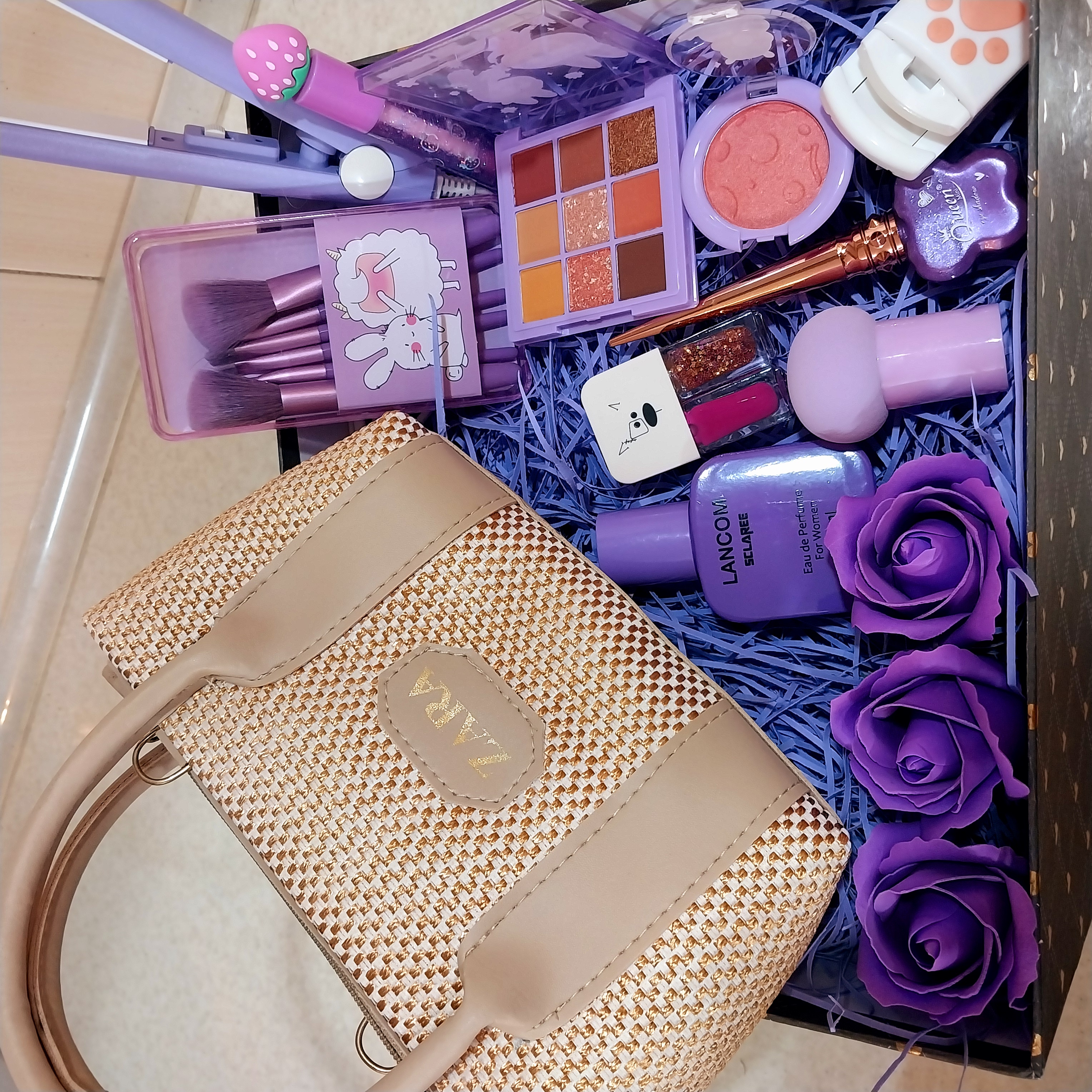 پک و جعبه کادو لوازم آرایش بنفش| هدیه خاص و لاکچری برای خانمها