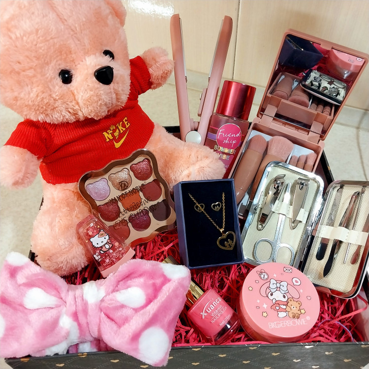 باکس هدیه لوازم آرایشی تولد و ولنتاین صورتی لاکچری
