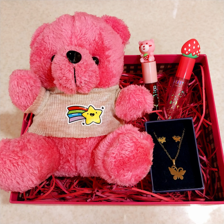 باکس هدیه لوازم آرایشی تولد و ولنتاین صورتی لاکچری