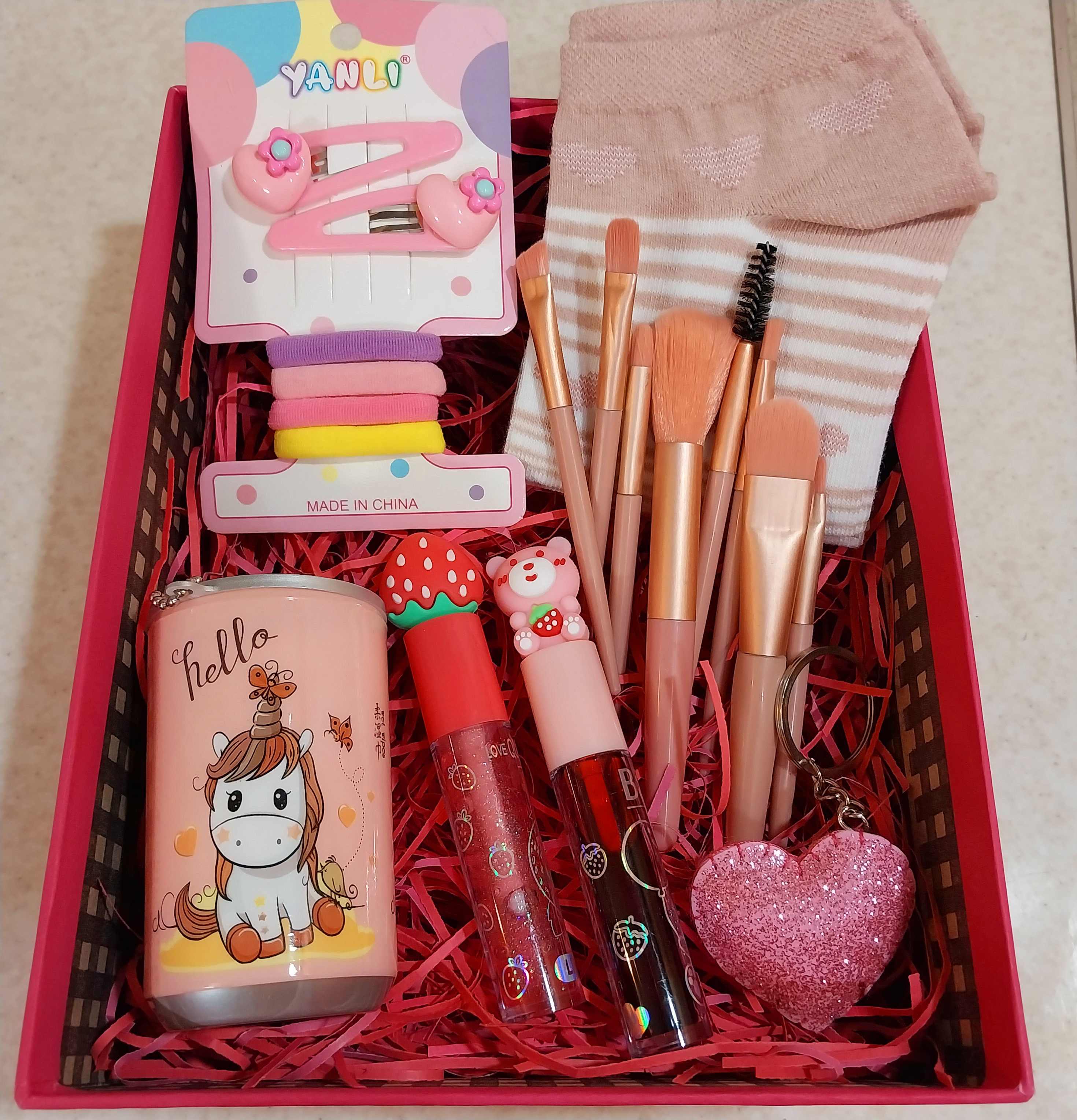 باکس هدیه دخترانه (لوازم آرایش) صورتی