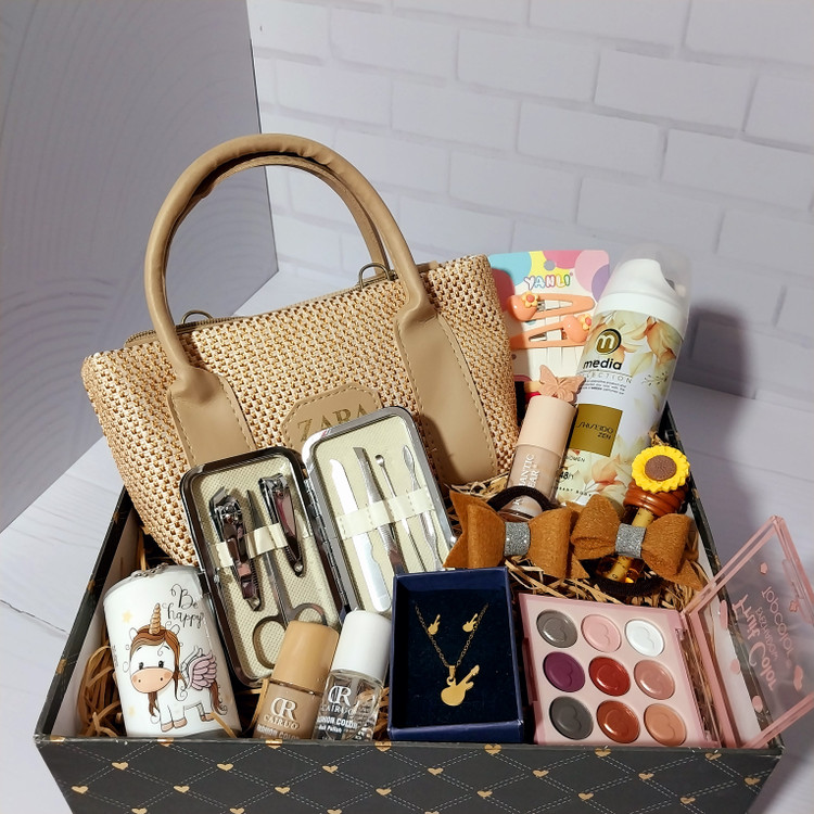 باکس هدیه دخترانه قهوه ای هدیه تولد دخترانه روز دختر