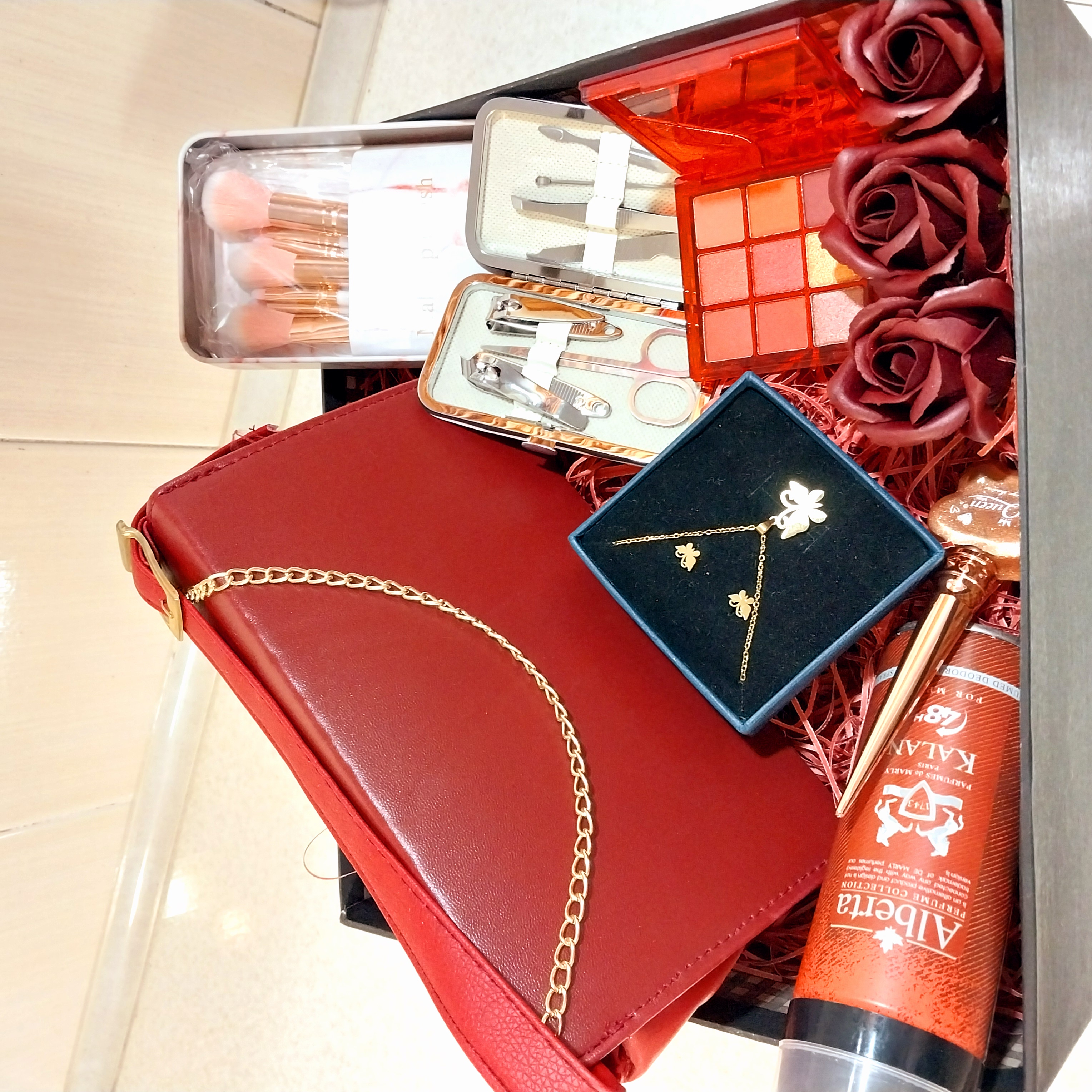 پک و جعبه کادو لوازم آرایش قرمز | هدیه خاص و لاکچری برای خانم‌ها