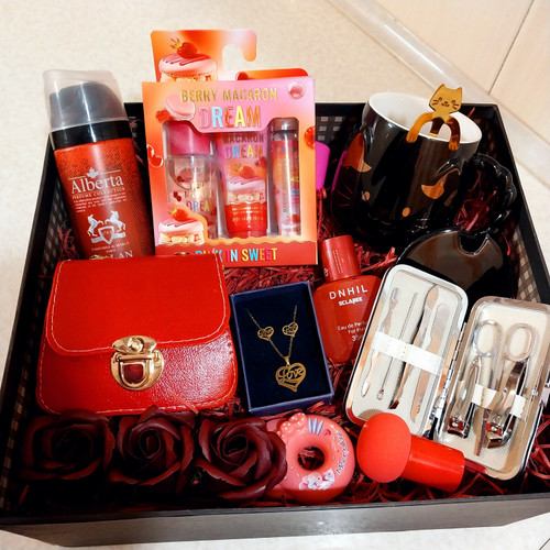 پک و جعبه کادو لوازم آرایش قرمز | هدیه خاص و لاکچری برای خانمها